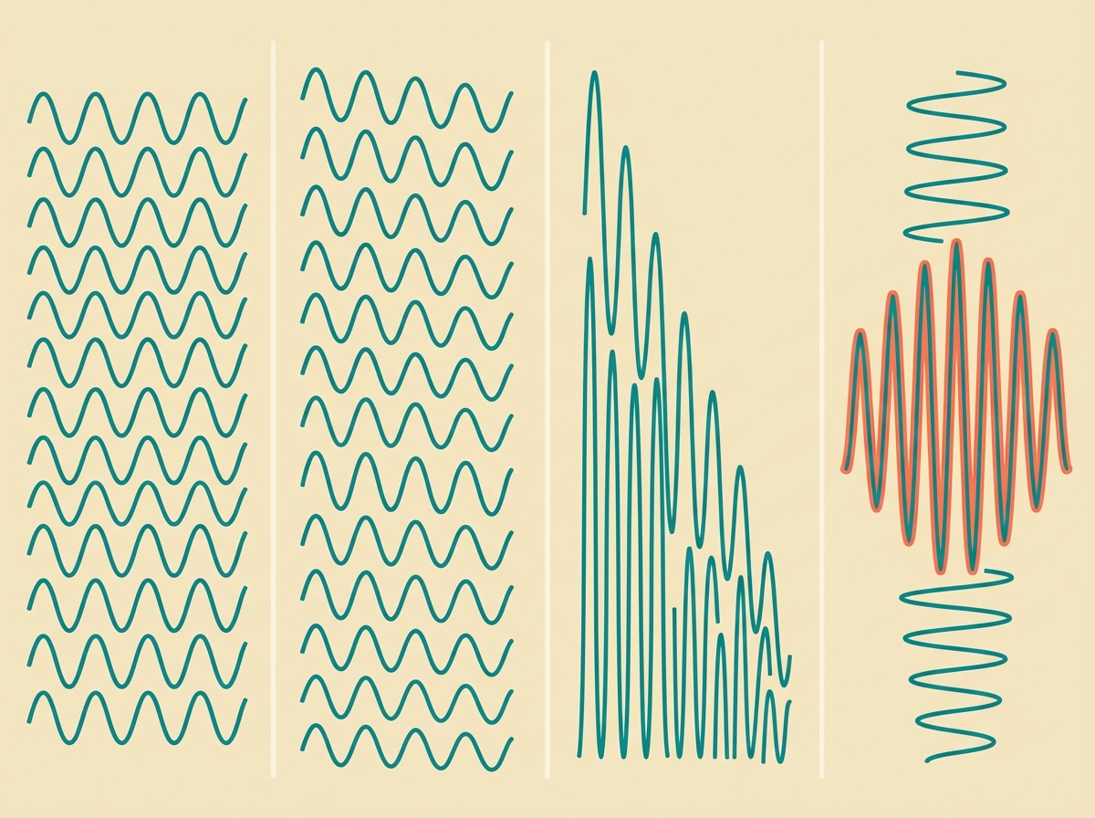 Let me be direct about something: white, pink, and brown noise all have mathematical definitions based on spectral power density. "Green noise" doesn't. It's a descriptive term that emerged from the sound design and wellness communities to describe nature-like ambient sounds. Think rustling leaves, a babbling brook, gentle wind through trees.
