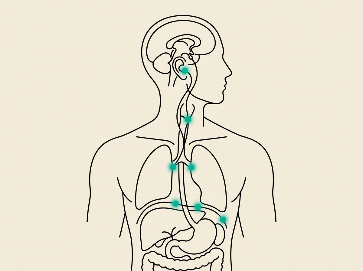 The vagus nerve is the longest cranial nerve in your body. It runs from your brain stem through your neck, chest, and abdomen, connecting to your heart, lungs, digestive system, and more. It's cranial nerve X, and it's the primary communication line between your brain and your body's recovery systems.