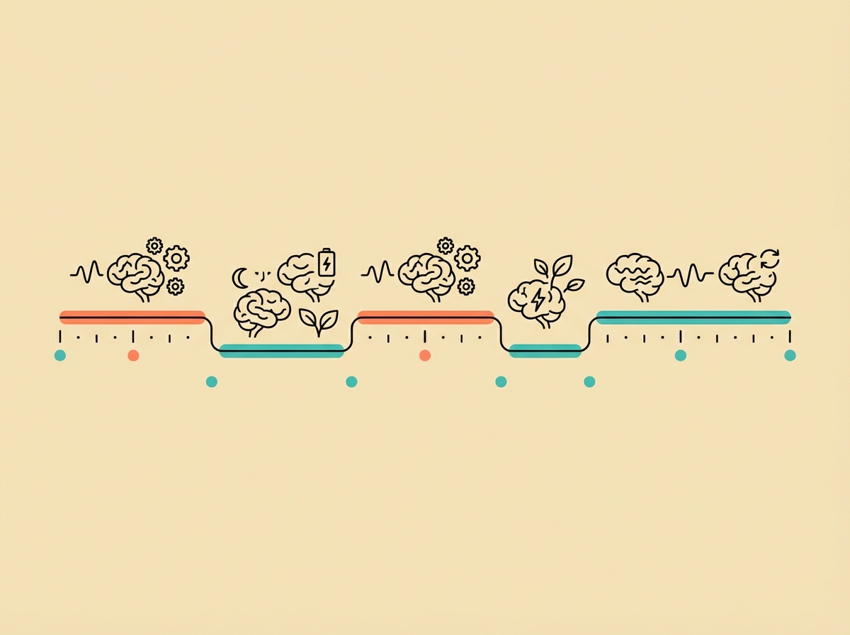 Prevention beats treatment. Instead of waiting until you're mentally exhausted and then trying to recover, structure your cognitive work in 90-minute blocks with deliberate recovery windows between them.