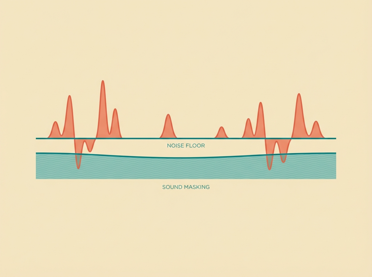 White noise works by raising the "noise floor" in your room. When there's a consistent background sound, the relative difference between that background and a sudden disruption shrinks. A car horn at 2 AM is jarring in silence. Over white noise, the same horn is much less noticeable.