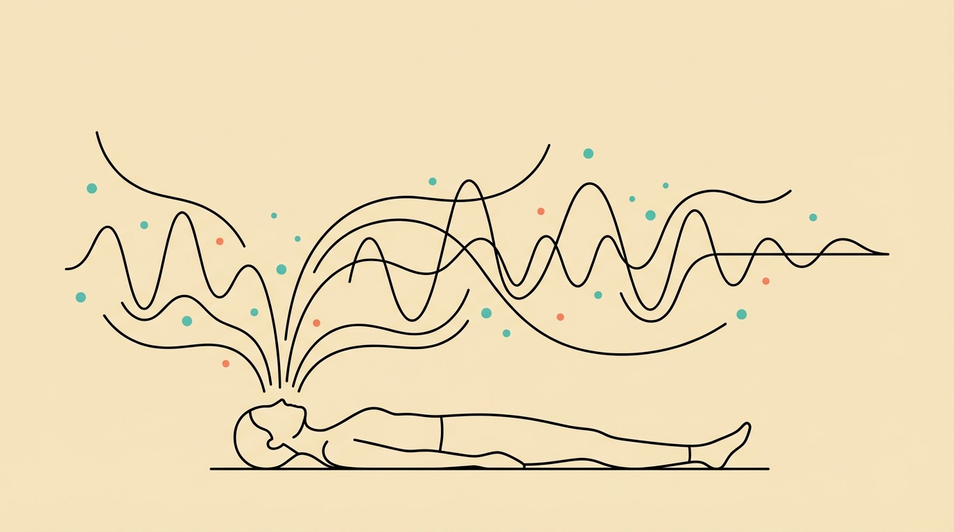 The result is a specific brain state that most people can't access on their own. Your nervous system downshifts from sympathetic (fight-or-flight) to parasympathetic nervous system dominance, and your brainwaves slow from beta to theta and delta ranges.